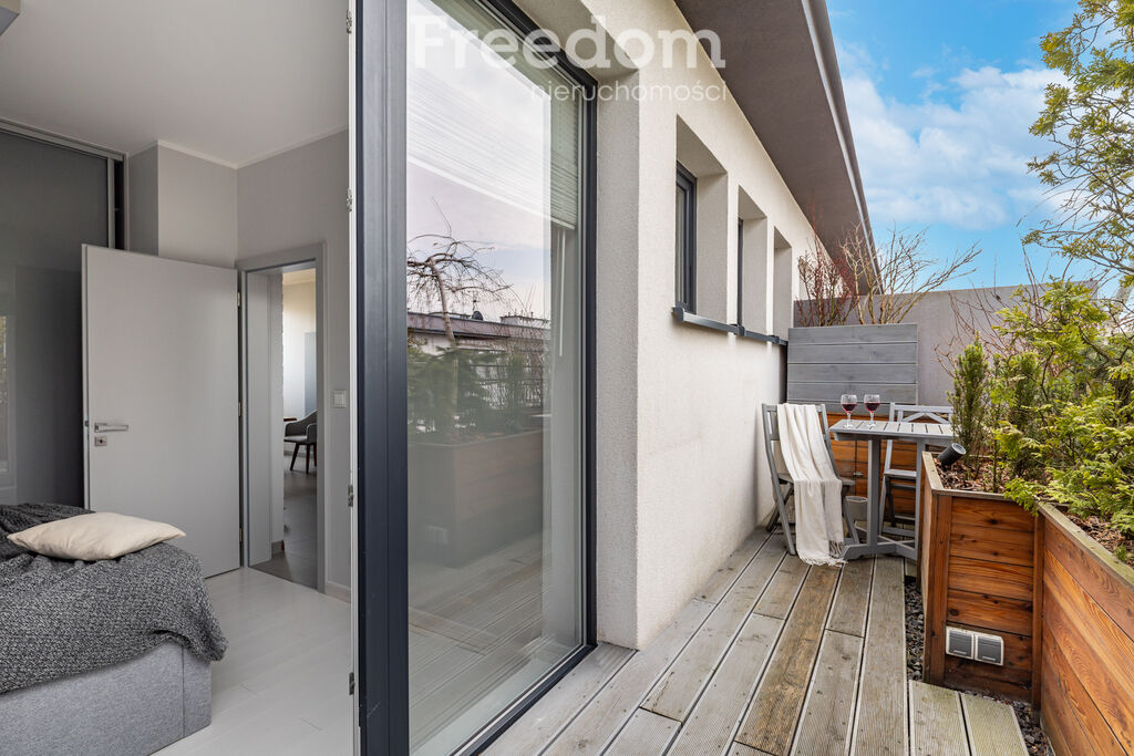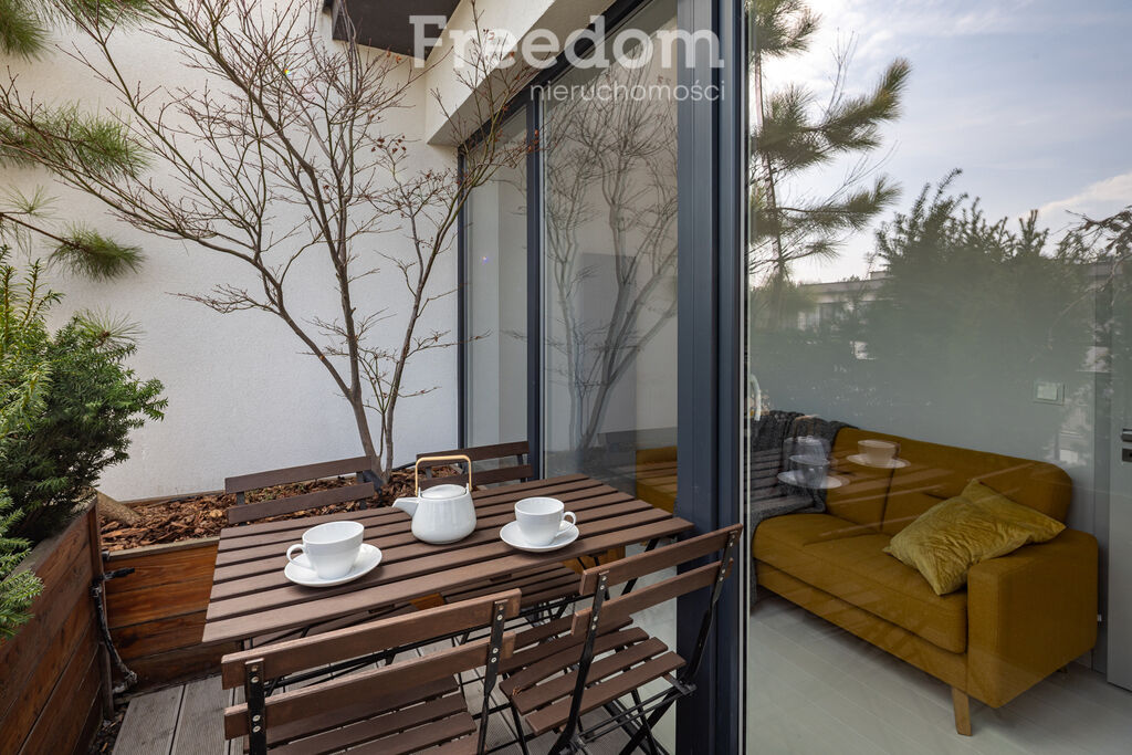 taras wschodni, dostępny z salonu oraz mniejszego pokoju – idealne
